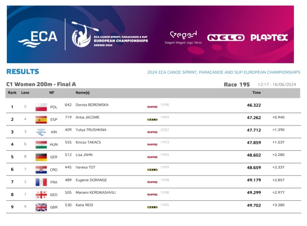Naime od 13. do 16. lipnja je u gradu Szegedu, na regatnoj stazi Maty-er održano prvenstvo Europe za seniore. Naša kanuistica Vanesa Tot je nastupila u dvije discipline i to kanu jednoklek (C-1) na 200m te na 500m.